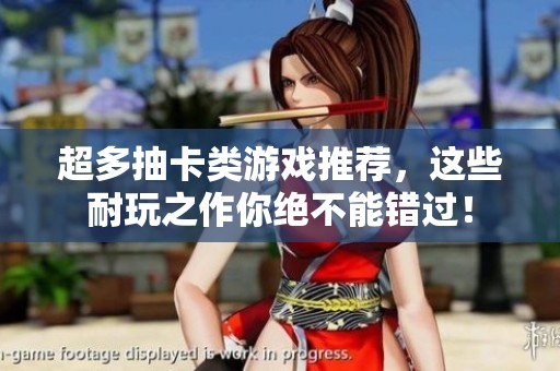 总的来说,抽卡类游戏以其丰富的角色收集与深度玩法,吸引了无数玩家的关注。每款游戏都有其独特的魅力和设计,在这个多元化的游戏世界中,总有一款会打动你的心。无论你是喜欢剧情,还是沉迷于角色培养,这些耐玩的抽卡类游戏都值得你去尝试。快来加入这场充满惊喜与挑战的抽卡之旅吧!