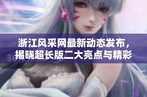 近日,《浙江风采网》发布了最新动态,揭晓了超长版的重要亮点与精彩内容。这一动态旨在为广大用户带来更多有价值的信息,进一步提升服务质量。网站向用户传达了多项优化措施和更新内容,充分显示出浙江风采网在持续发展的决心和信心。