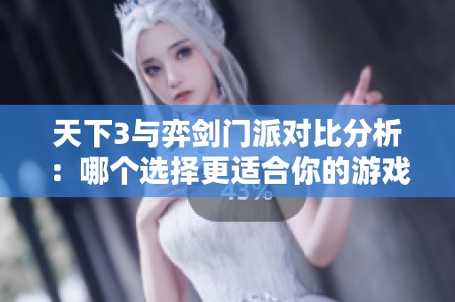 在《天下3》这个绚丽多彩的游戏世界中,各个门派展现出独特的玩法与风格。其中,弈剑门派以其独特的剑术和策略深受玩家喜爱。那么,弈剑门派与其他门派相比,哪个更适合你呢?本文将针对两者进行对比分析,帮助玩家选择更符合自身游戏风格的门派。